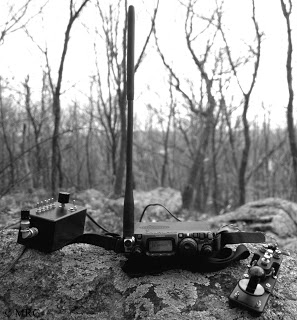 I built it out of spare parts in the junk box and from a few gathered at hamfests. I used a typical radio shack plastic black box, they’re usually sturdy enough. The capacitor is an air variable, silver plated type while the toroid is from an old, scrapped computer supply. The design uses 5 switchs to parallel different inductances which gives about 32 possible combinations, all from a common inductor. The setup is the typical “L” network type with a slight twist: its a high pass design rather than the common low pass type. I also put in a homebrew led swr bridge – one of my first attempts to reproduce a similar circuit by N7VE(http://www.qrpkits.com/files/LED%20SWR%20v1.pdf). Here it is in action with my trusty FT 817 and CTE flameproof navy key atop of Mt. Taurus in Cold Spring, NY: