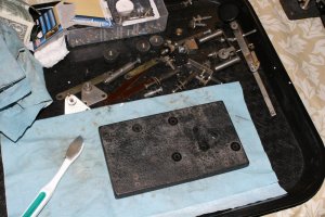 Finally finished cleaning a few bugs this weekend, the 1933 Lightning and Lionel J 36. Here’s the 1933 base, parts(brasso’d), and final re-assembly: