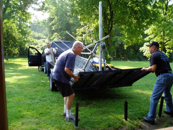 The following picture appeared on the front page and described that Scott Dunlavey (foreground-left) and Julian Blair (foreground-right) were unloading a 40 foot crank up tower upon which beam antennas would be placed. These beam antennas would permit around-the-world communications.